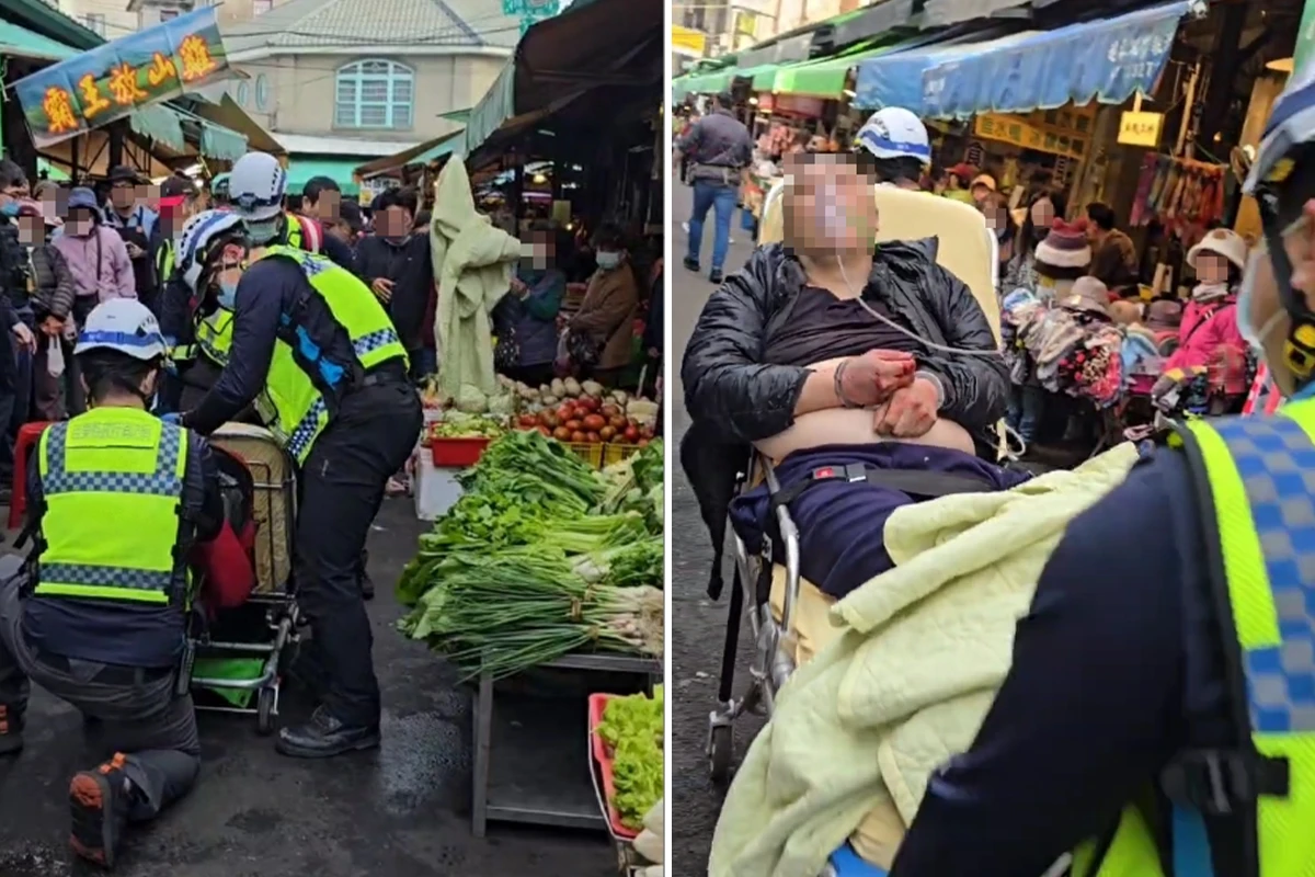 苗栗一名鍾姓男子,今天(4日)早晨7點多突然拿著刀械,跑到市場中閒晃、更揚言要砍人,另攤商和買菜民眾都十分害怕,警方獲報趕到後,鍾男卻突然抓狂...