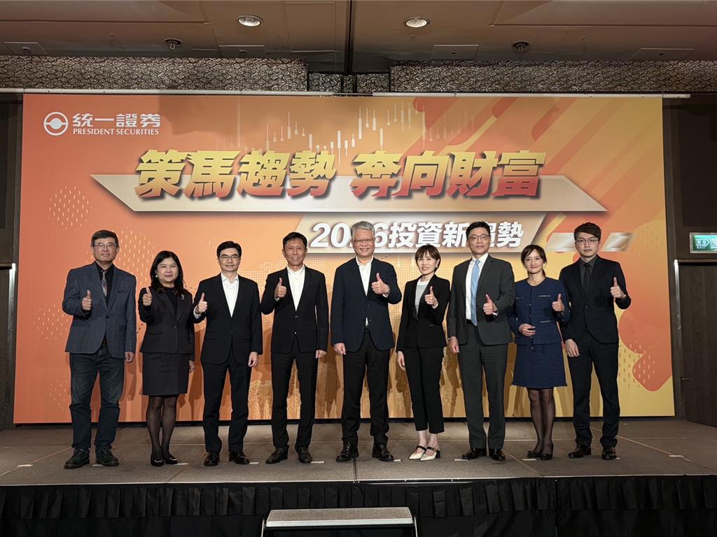 統一證券於12月3日在台北喜來登大飯店,盛大舉行2026年台股投資展望會,邀請知名總體經濟學家吳嘉隆及統一證券講師群:統一投顧總經理廖婉婷、統一投顧總體經濟學家呂政道,以及統一投信明星經理人陳意婷協理,共同深入剖析2026年投資趨勢,並在焦點對談時間加入統一投顧董事長黎方國,與談者精彩的對談論點,讓...