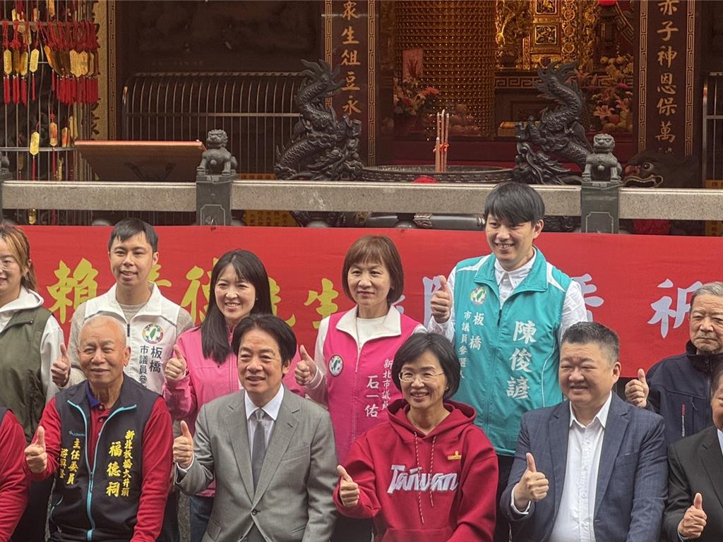 賴清德總統今(8)日與民進黨新北市長參選人蘇巧慧帶領參選新北市議員的民進黨小雞赴新北市板橋大井頭福德祠、接雲寺參拜,並參與中醫師公會開幕式,蘇巧慧說,她會持續推動政見,告訴大家她的未來願景,希望以這樣