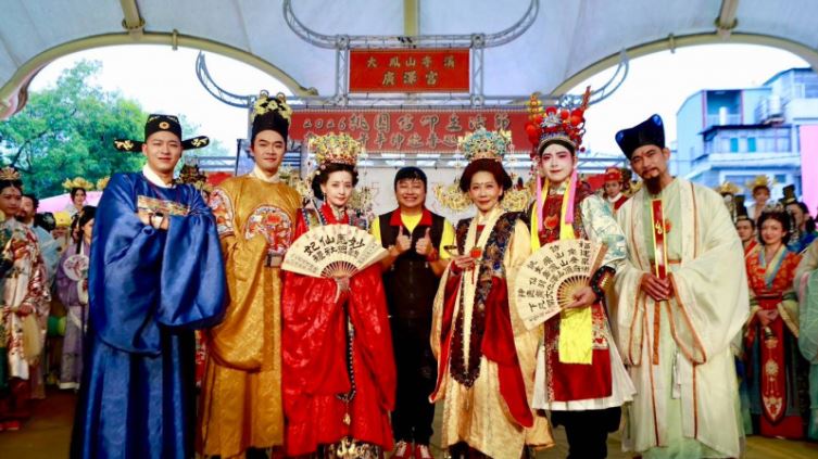 由「搖滾宮主」賴銘偉(Yuming)主導、桃園大溪鳳山寺廣澤宮舉辦的「2026桃園信仰生活節」-丙午年神遊春巡嘉年華,4日兒童節熱鬧登場,吸引破千人參與;其中最受矚目、邁入第4年的活動重頭戲「漢服真人扮仙」,今年有包括郎祖筠、亮哲、BL劇CP初孟軒及鍾岳軒、明星夫妻檔龍語申及何依霈、陳大天及劉璞、情侶檔楚翔及茵芙等102位演員、人氣KOL網紅及YouTuber身著漢服登場,特別吸睛,眾星都以