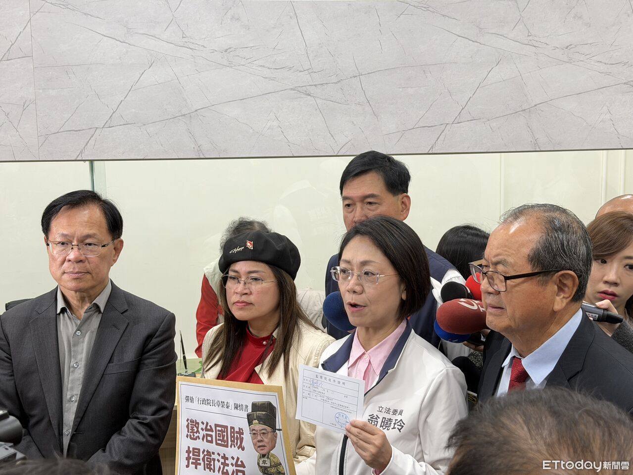 針對行政院長卓榮泰未副署《財政收支劃分法》修正案,以及115年度總預算未加入立法院三讀通過的法案,藍白立委今(23日)赴監察院提出陳情,要求監委彈劾卓榮泰。藍委王鴻薇指出,如果允許卓榮泰這樣濫權,那總統府、立法院可以廢掉了,怎可以公告實施的法律,到了行政院這邊不執行?「我們是法治的國家,不是卓治國家,不是卓榮泰說了算」。