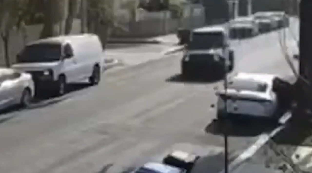 美國洛杉磯一名勇媽得知家中闖入搶匪,駕駛休旅車的她為了保護家人,立即開回家中並且奮力撞向搶匪車輛,導致竊賊只能狼狽步行逃跑,英勇畫面全被監視器拍下。