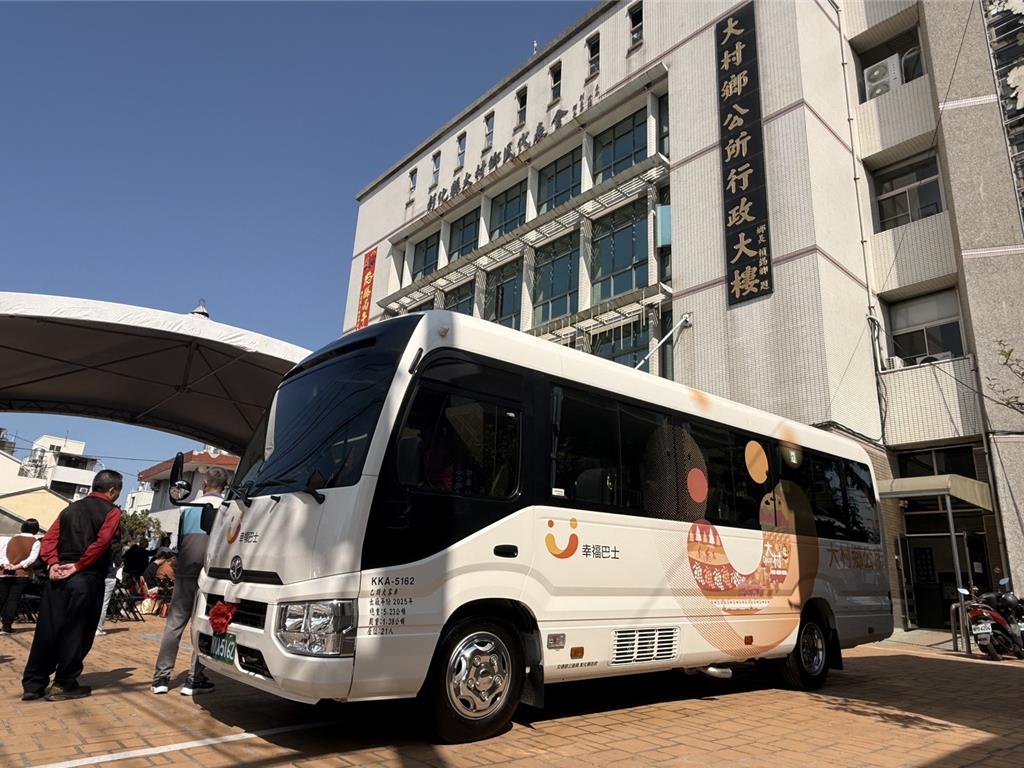 彰化縣大村鄉公所11日上午舉辦幸福巴士啟用典禮,宣布將從本月23日開始通車,屆時將有定班定線及預約路線兩種行駛路線,總行駛路線約13公里。定班定線以接駁學生為主,保障學生通學安全;預約路線提供長者方便就醫、