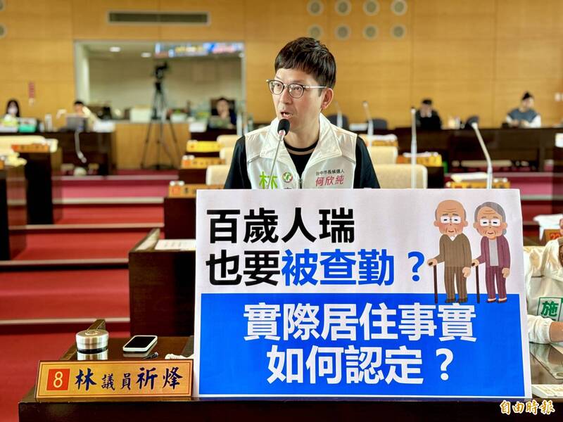 台中市議會今(10)日進行民政業務質詢,市議員林祈烽及施志昌指出,市府每年發放逾10億元的重陽敬老禮金及逾2千萬元的百歲人瑞敬老禮金,政策立意良善,但在百歲人瑞每月6000元的敬老禮金申請認定上,卻出現標準模糊、與現實脫節的情況,甚至出現長者僅因訪查當下不在戶籍地,即被認定未實際居住而遭駁回的荒謬案例。林祈烽表示,台中市去年共有50萬4736名長者領受重陽敬老禮金,發放金額高達10億8894萬元,而針對百歲人瑞,市府另致贈每月6000元禮金,展現對長者的尊重與照顧。但西屯區有一名剛滿百歲的長者,因輪流到彰化兒子家居住,恰巧區公所來訪查時人在彰化而不在戶籍地,竟被認定「未實際居住本市」而喪失請領資格,讓家屬與長輩都難以接受。