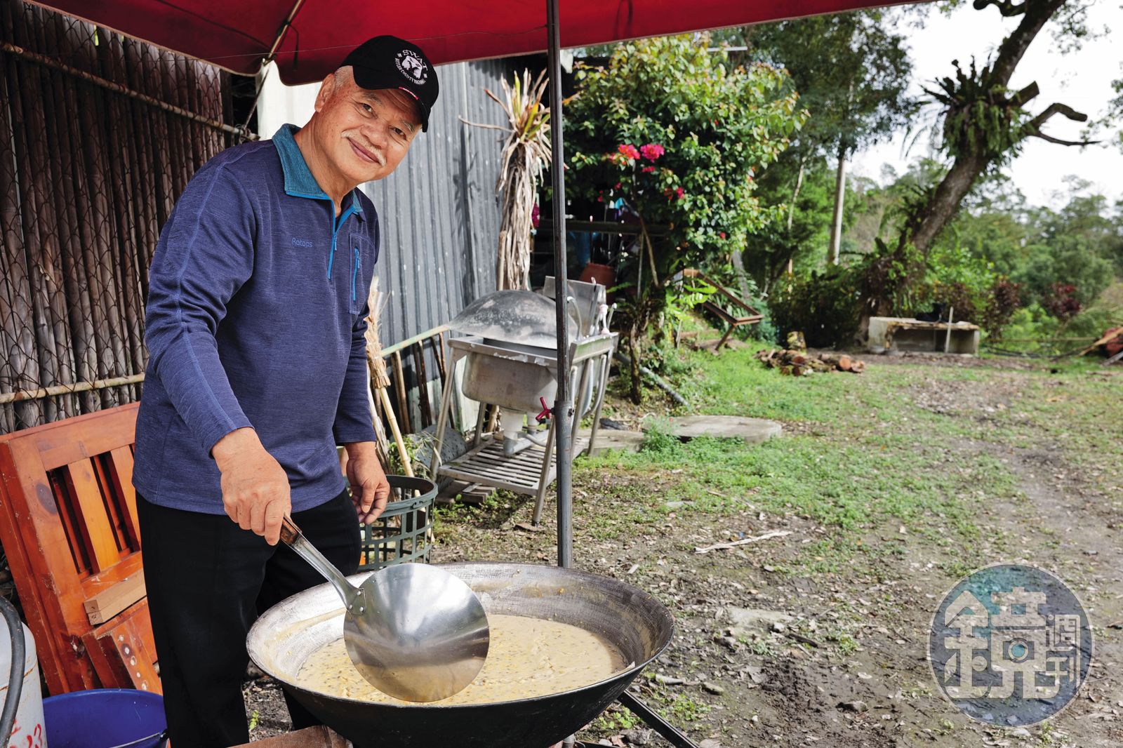 他們負責開怪手 我負責開玩笑 高山協作組陽光福「原本預估1個禮拜就可下山,結果變4個禮拜,他們把我煮菜的米酒都喝光了。」66歲的阿美族人陽光福,頂著白髮、蓄著白鬍,是高山協作組領隊,大家都稱他「頭目」。他一面抱怨,一面透著得意:「沒辦法,一直挖、一直崩,他們越挖越順,很多土方都可利用水的力量帶下去。」司機工作時,陽光福...