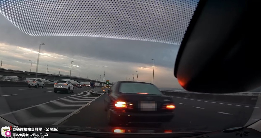 有民眾在網路上傳一段行車紀錄器畫面,顯示27日下午5時許,在國道3號北向211.9公里霧峰路段,一輛自小客車竟違規跨越槽化線,險象環生的畫面引發熱議。國道公路警察局第七公路警察大隊對此做出回應,表示雖然尚未接