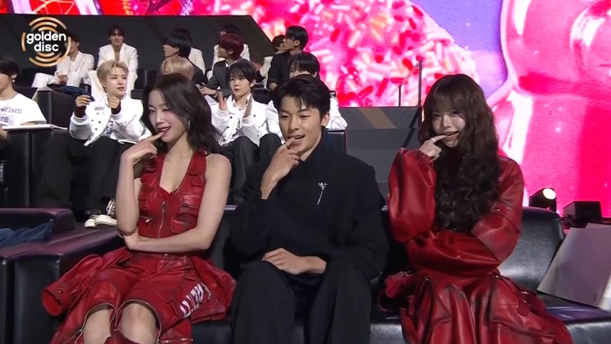 【記者陳薇安/台北報導】韓國音樂界最大盛事「金唱片大獎」(Golden Disc Awards)首度來台舉行,慶祝設立40周年,今晚在台北大巨蛋舉行。台灣男神許光漢擔任頒獎嘉賓,他在「SEVENTEEN」師弟「TWS」表演前,偷偷上台坐在藝人席,被cue到TWS經典的《OVERDRIVE》撒嬌「Umm挑戰」時,跟著「LE SEERAFIM」一起咬手指撒嬌,尖叫聲爆表,嗨爆3.3萬名粉絲。