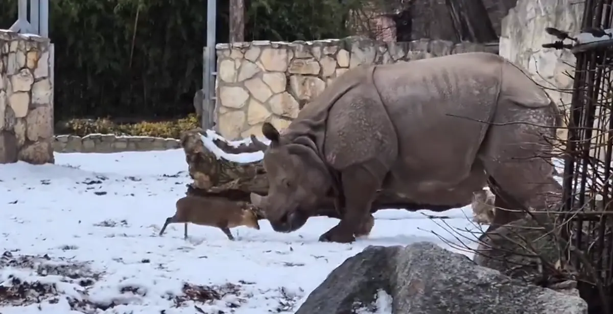 小蝦米對抗大鯨魚現實版!近期在波蘭弗羅茨瓦夫動物園(ZOO Wrocław)內,有隻體重僅15公斤的公山羌,竟主動衝向重達1,700公斤的印度母犀牛發起「挑戰」,雙方對峙來...