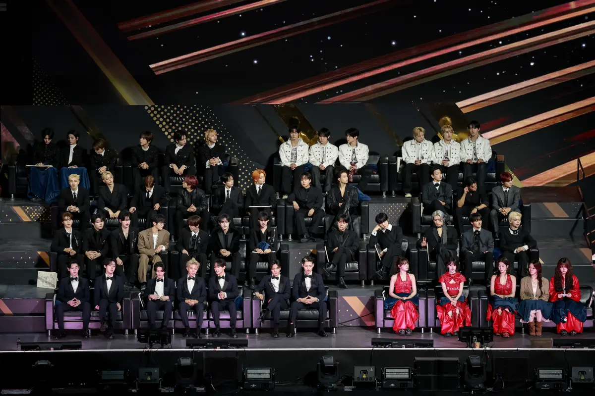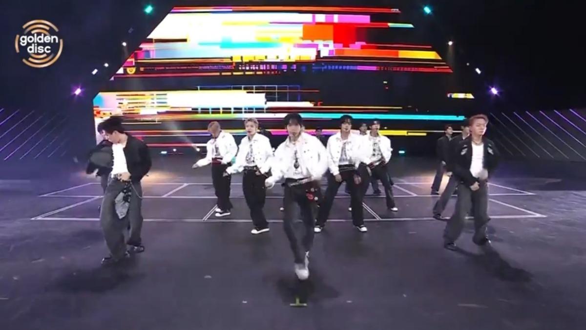 【記者陳薇安/台北報導】韓國音樂界最大盛事「金唱片大獎」(Golden Disc Awards)首度來台舉行,慶祝設立40周年,今晚在台北大巨蛋舉行, 由「ZEROBASEONE」(ZB1)中國成員章昊和隊長成韓彬演場《Better》開場,致敬大前輩BoA寶兒。BTS師弟團「CORTIS」把跑步機的輸送帶搬上台,嗨跳《What you want》,台泰混血成員JAMES(趙雨凡)在舞台上的藝人席不停在素描本上寫字,跟台下粉絲互動,全場3.3萬名粉絲尖叫聲掀頂。
