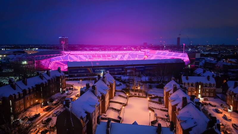 英國伯明罕(Birmingham) 近日出現罕見景色,在降雪的晚間,夜空被一層詭譎的粉紅色光芒籠罩,令當地居民與遊客驚呼不已,這一異景震撼又神秘,相關影像迅速在網上瘋傳,網友紛紛猜測是否為異常日落,甚至有人直呼「北極光降臨英國」。根據《bbc news》報導,粉色天空的真相並非天文奇景,當地足球俱樂部隨後證實,這道粉紅光其實來自球場使用的粉紅色LED燈,在特殊氣候條件下,燈光被雲層與積雪反射空中,才造成整片天空染上粉紅色的視覺效果。