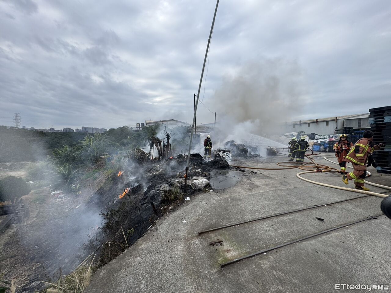 新北市林口區粉寮路二段今(10日)下午3時28分發生火警!現場為一間1層樓高的資源回收場,堆放的垃圾出現火煙,新北市消防局接獲報案緊急派員前往現場灌救,並在下午3時50分撲滅火勢。據了解,因燃燒雜草時不慎引燃戶外塑膠廢棄物,燃燒面積約30平方公尺,所幸無人受困或傷亡。