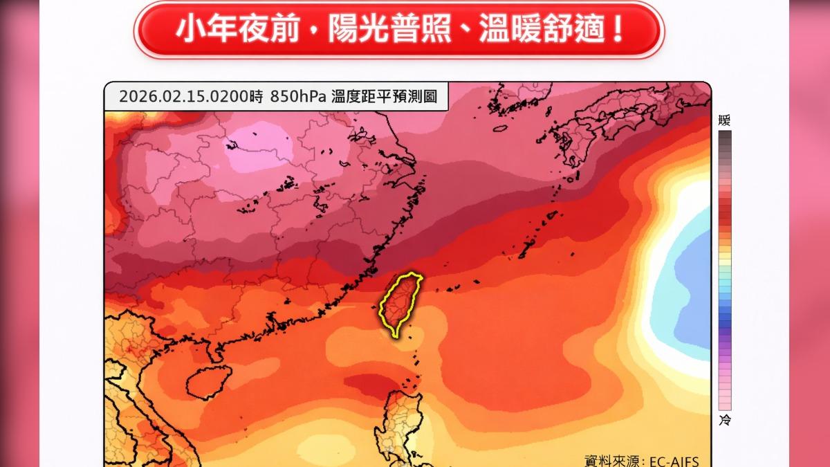 氣象署今天表示,15日小年夜前晴到多雲,除夕、初一鋒面通過及東北季風增強,北部降溫,桃園以北及宜花有雨;初三、初四北部溫...