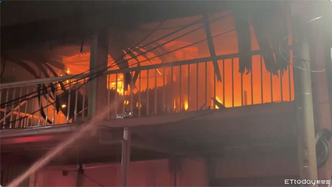 高雄市鳳山區力行路今凌晨3時許驚傳火警,一間鐵皮製茶工廠突然竄出火舌,濃煙直衝天際,警消獲報指出疑似有人受困,立即派遣11個分隊、22車48人趕赴搶救。警消抵達時,二樓已陷入全面燃燒,火勢猛烈,場面相當驚險。