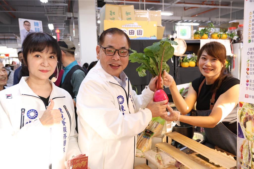 小年夜一早,台南各傳統市場湧現採買人潮,年節氛圍熱鬧升溫。民進黨立委、台南市長參選人陳亭妃15日清晨偕同市議員陳碧玉、李偉智、陳秋萍,前往新市、新化及永康崑山市場拜年,攜財神爺沿途發送「一元復始紅包」與「幸福煎餅」,吸引不少民眾圍觀排隊,現場洋溢濃濃春節喜氣。