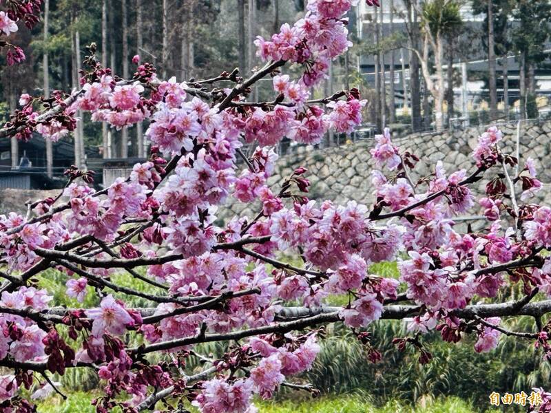嘉義大阿里山地區櫻花季元月初就登場,第一波的河津櫻與緋寒櫻雖已謝幕,目前由重瓣緋寒櫻、福爾摩沙櫻、椿寒櫻與昭和櫻接力登場,其中重瓣緋寒櫻、福爾摩沙櫻都滿開中,紅白爭峰畫面令人目不暇給,春節期間上山賞櫻迎新春正是時候。「櫻花達人」黃源明指出,寒溪呢第一波的紅白櫻花已經滿開,逢農曆春節連假,想要體驗藝人周子瑜的櫻花秘境,特別是虹橋兩側的白花山櫻氛圍,現在可以出發了。寒溪呢紅色系的櫻花為重瓣緋寒櫻(俗稱八重櫻),白色系的則是最受矚目的福爾摩沙櫻,分布在虹橋兩側,建議的賞花路線為順著行走動線,穿越八卦、四象、兩儀後,再沿著虹橋緩緩登上太極亭,沿途除了向前視野,也可以停留往兩側及後方回望,透過鏡頭取景,搭配寒溪呢周遭的群山,都會有不錯的拍攝效果。