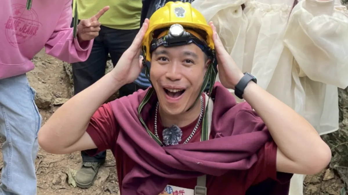 無尊、阿翔、楊繡惠及籃籃於《綜藝新時代》抵達高雄鼓山出外景,經過長達半小時的攀爬,眾人抵達目的地「猩猩洞」,在職人帶領下抵達地下鐘乳石洞穴,怎料過程無尊因洞...
