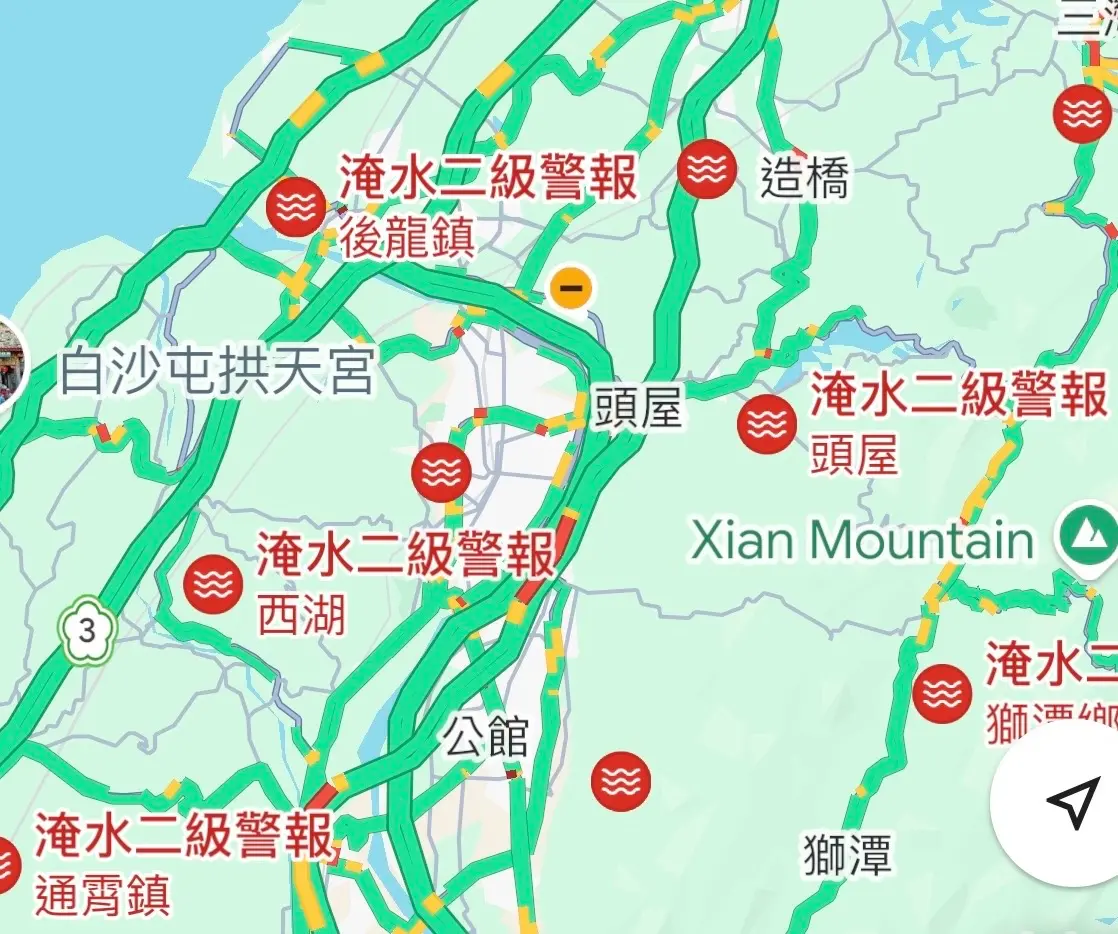 中央氣象署對14縣市發布大雨特報提醒,受鋒面影響,易有短延時強降雨,苗栗縣已有局部大豪雨,新竹縣及臺中市山區有局部豪雨發生,今晚到明(5)日桃園以南地區及新北市山區有局部大雨發生的機率,請注意雷擊及強陣風,山區請慎防坍方及落石,低窪地區請慎防積水。氣象署也對「南投縣、雲林縣、嘉義縣、彰化縣」發布大雷雨即時訊息,持續時間到傍晚6點40分。