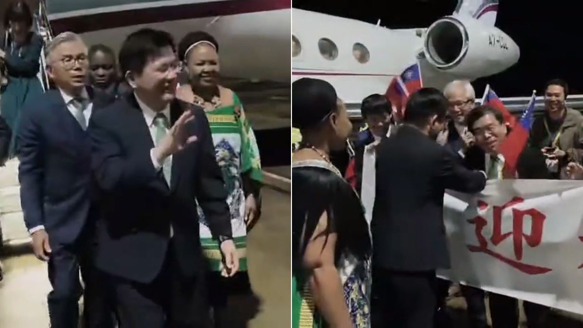 總統賴清德元定出訪史瓦帝尼,因中共打壓導致三國臨時取消航權取消,今天上午總統特使,外交部長林佳龍抵達史瓦帝尼,一下飛機史國外交部長戴柏莉就親自迎接,僑胞也高舉國家守候在機場,林佳龍一下飛機,就高喊「終於來了」。