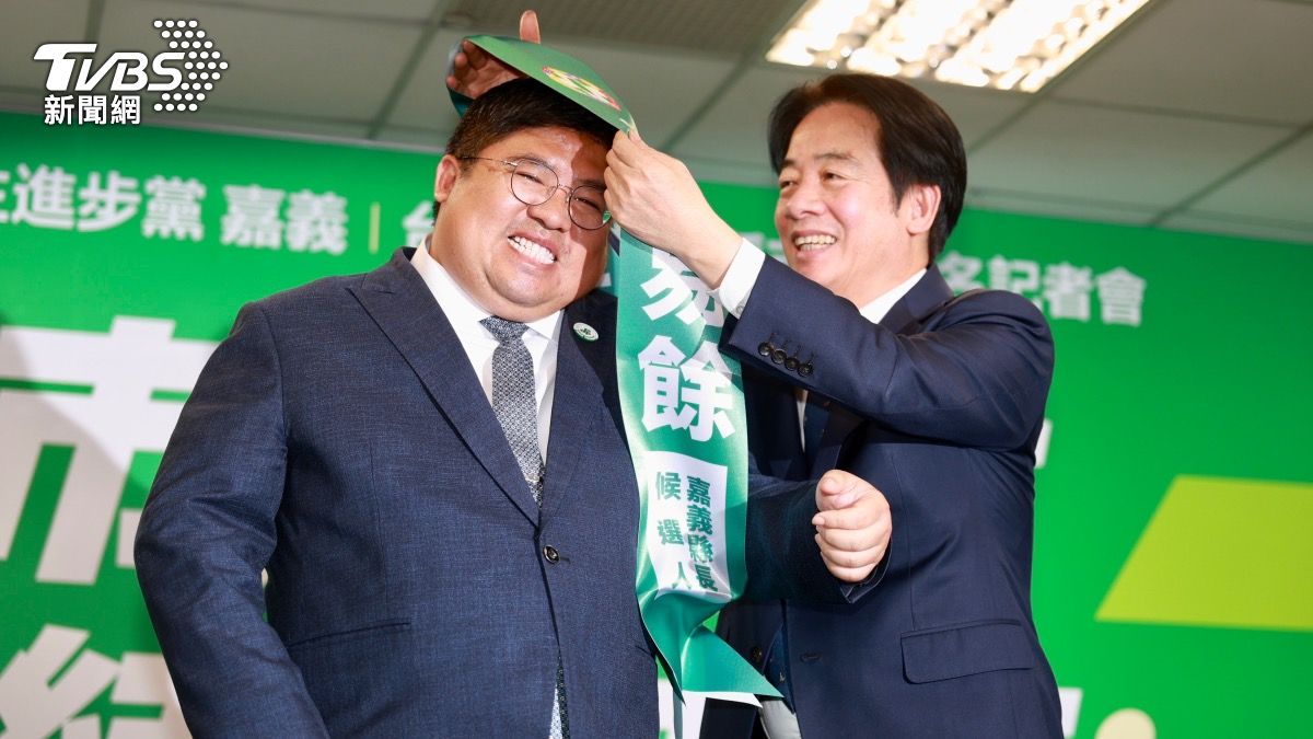 民進黨嘉義縣長初選結果出爐,有「嘉義玄彬」之稱的立委蔡易餘擊敗縣議員黃榮利順利出線。今(21)日民進黨中執會正式通過提名,並由總統兼黨主席賴清德親自主持嘉南高首長候選人提名記者會,並為3人披上競選背帶。但過程中出現插曲,賴清德為蔡易餘披上背帶時,疑似因蔡易餘的體型太龐大,背帶一度無法順利套好,讓賴清德忍不住喊「這(背帶)已經是最長的了」。另外,嘉義縣長翁章梁也當場秀出蔡易餘60公斤的模樣,大讚蔡如今已是「靈活的胖子」。