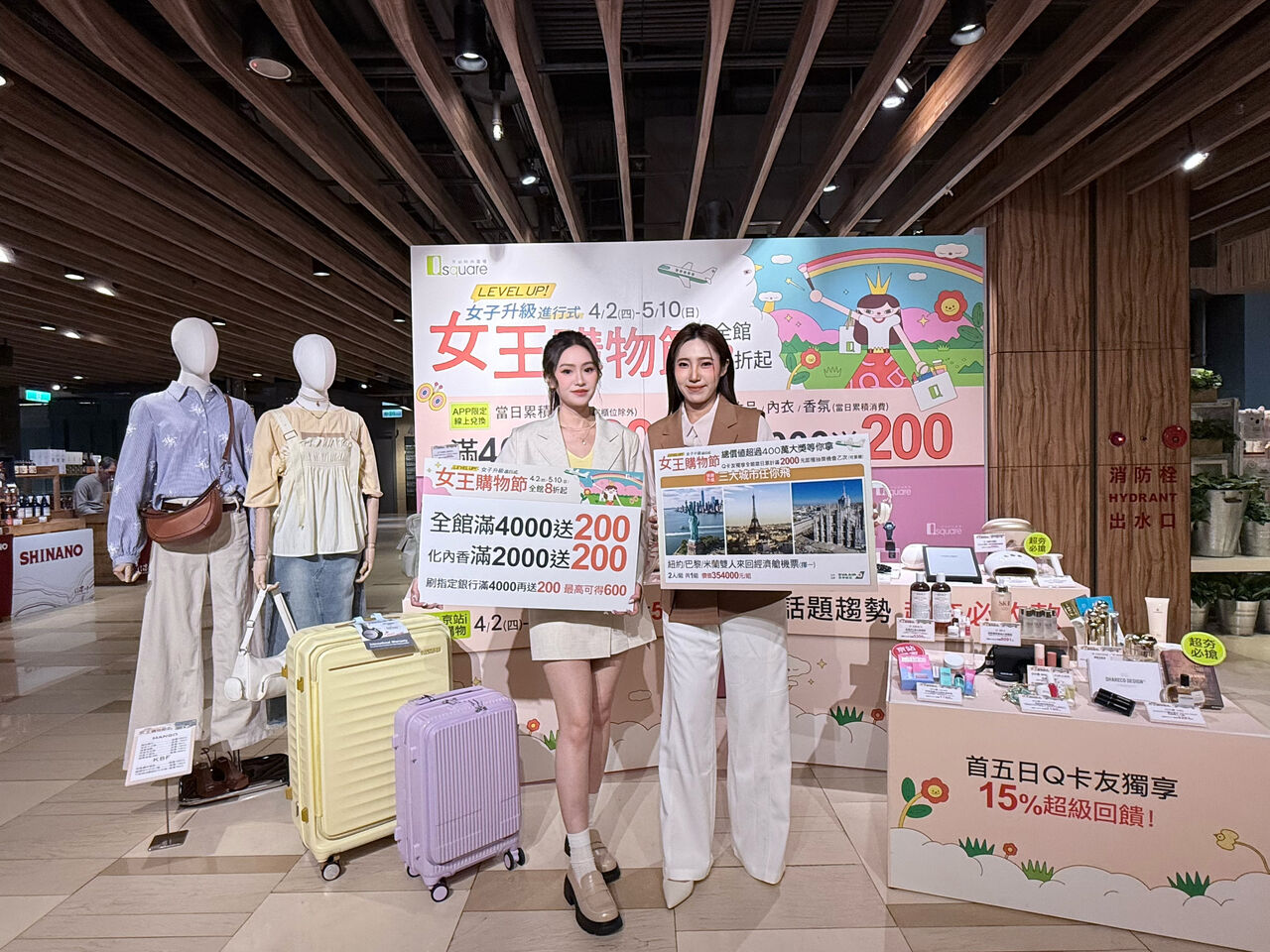 京站時尚廣場女王節啟動「LEVEL UP!女子升級進行式」計畫,讓購物不僅是滿足日常所需,也是重新梳理前進方向,逐步提升生活質感與掌握人生節奏的行動。除了全館滿4000送200、化妝品/內衣/香氛滿2000送200的超值回饋,更推出長榮航空價值35萬元的三大歐美城市機票大獎。