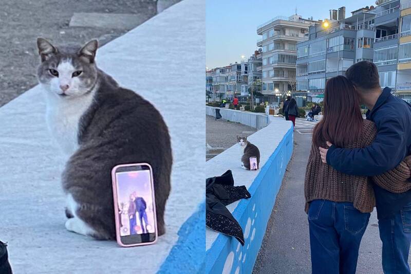 位於歐亞交界處的土耳其,自古以來就有「貓咪天堂」、「愛貓之國」、「貓奴聖地」等美名,當地街頭隨處可見許多與人和平共生的貓咪。近期各國網友瘋傳一張照片,只見一對男女為了自拍,竟直接將路邊一隻貓咪當成手機支架,讓貓咪瞬間露出極度厭世的神情,逗趣畫面也吸引超過千萬人朝聖。據悉,這張照片最早出自美國論壇Reddit,由一個帳號名為「Yavuz Yalçın Few_Bandicoot2302」的用戶在上月24日發布。從畫面顯示,一隻身材壯碩、坐在淺藍色水泥牆上的虎斑白底貓,被拍到身後放著一台開著自拍功能的手機,明顯被一對互相摟住彼此的男女當成手機支架,貓咪對此回頭朝2人露出相當不悅的厭世眼神。