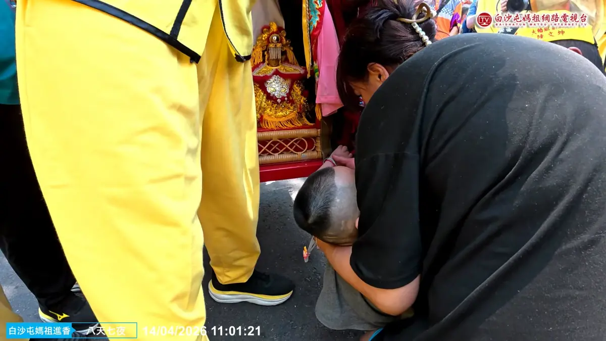 白沙屯媽祖慈悲!苗栗白沙屯拱天宮媽祖往北港進香今(14)日進入第2天行程,凌晨起駕後,於上午10點半進入彰化縣。在進入彰化市區時,有位母親抱著生病的兒子跪在路中...
