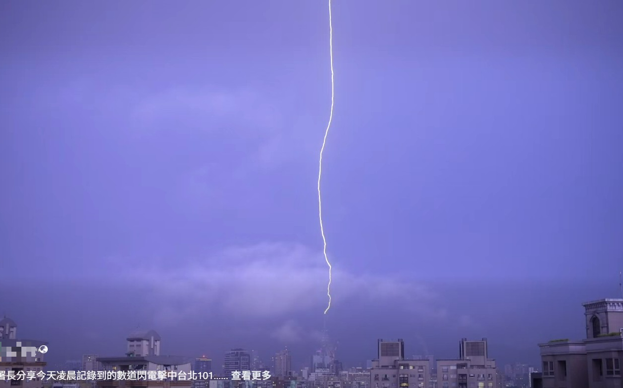 受到強勁春雨鋒面影響,西部「台南以北」下起超大雷陣雨。前中央氣象局長鄭明典分享「101大樓的閃電」,只見一到清晰的閃電,打在台北101的避雷針上,瞬間照亮夜空,畫面相當震撼。根據氣象署氣象預報,今天上午天氣不穩定,凌晨開始西半部陸續就會有陣雨或雷雨,白天之後東半部也會有局部短暫陣雨或雷雨,各地降雨機