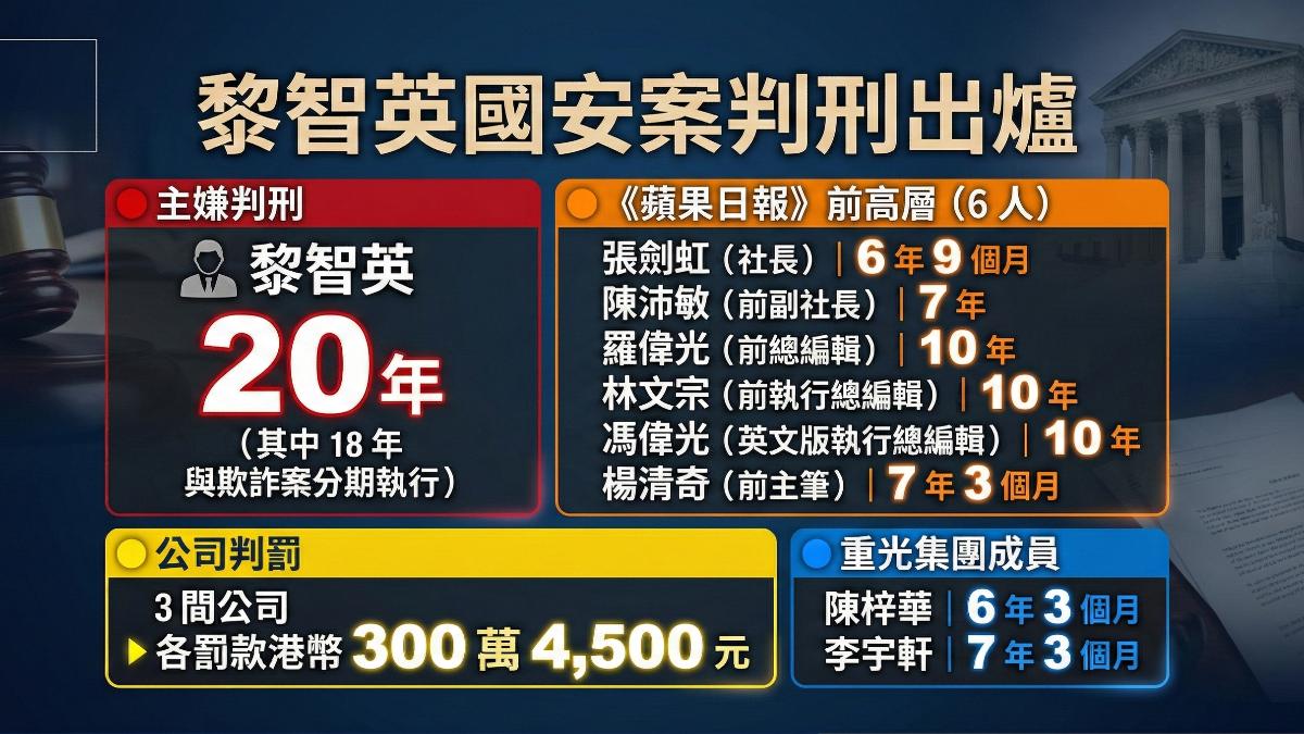 壹傳媒創辦人黎智英國安案今(9)日上午10時宣判, 黎智英被判處,...。