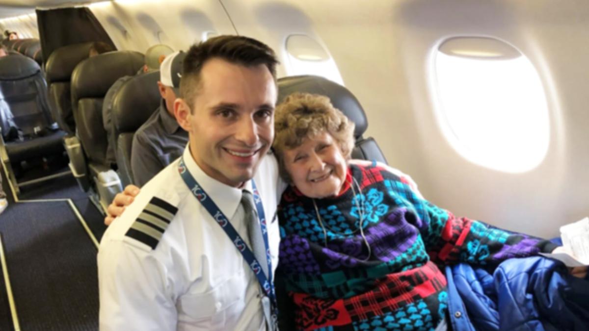 為人父母總希望孩子成就非凡,而在美國威斯康辛州,一位奶奶一直沒搭過飛機,原因是因為她曾說過,要等孫子拿到飛行員執照,才願意去飛。如今,孫子終於成為正式機師,她也如願登上由孫子親自駕駛的班機,還被升等頭等艙,開心直呼「被寵壞了!」