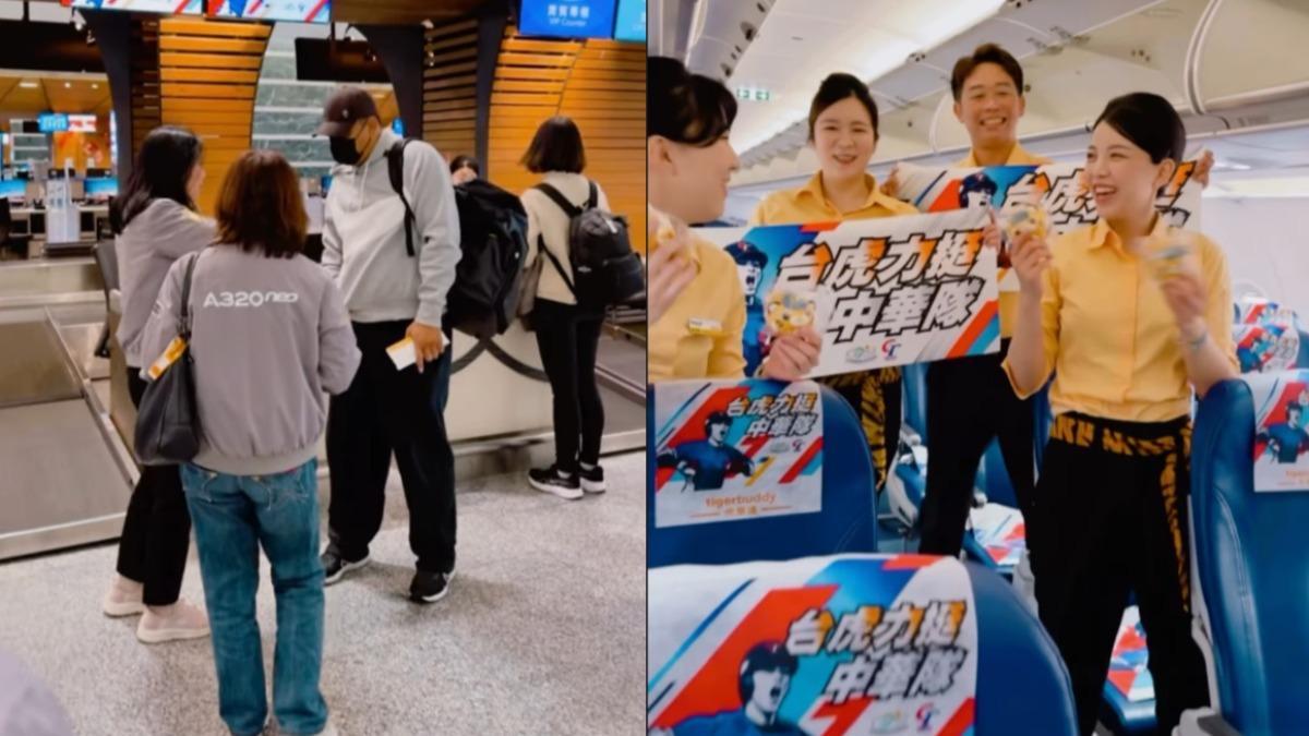 台灣虎航與台灣運動觀光發展協會合作,今天安排班機往返桃園及東京,並全面更換應援頭墊紙,吸引不少球迷搭乘指定應援航班,更有旅客捕捉到野生陳金鋒,球迷大呼值得。
