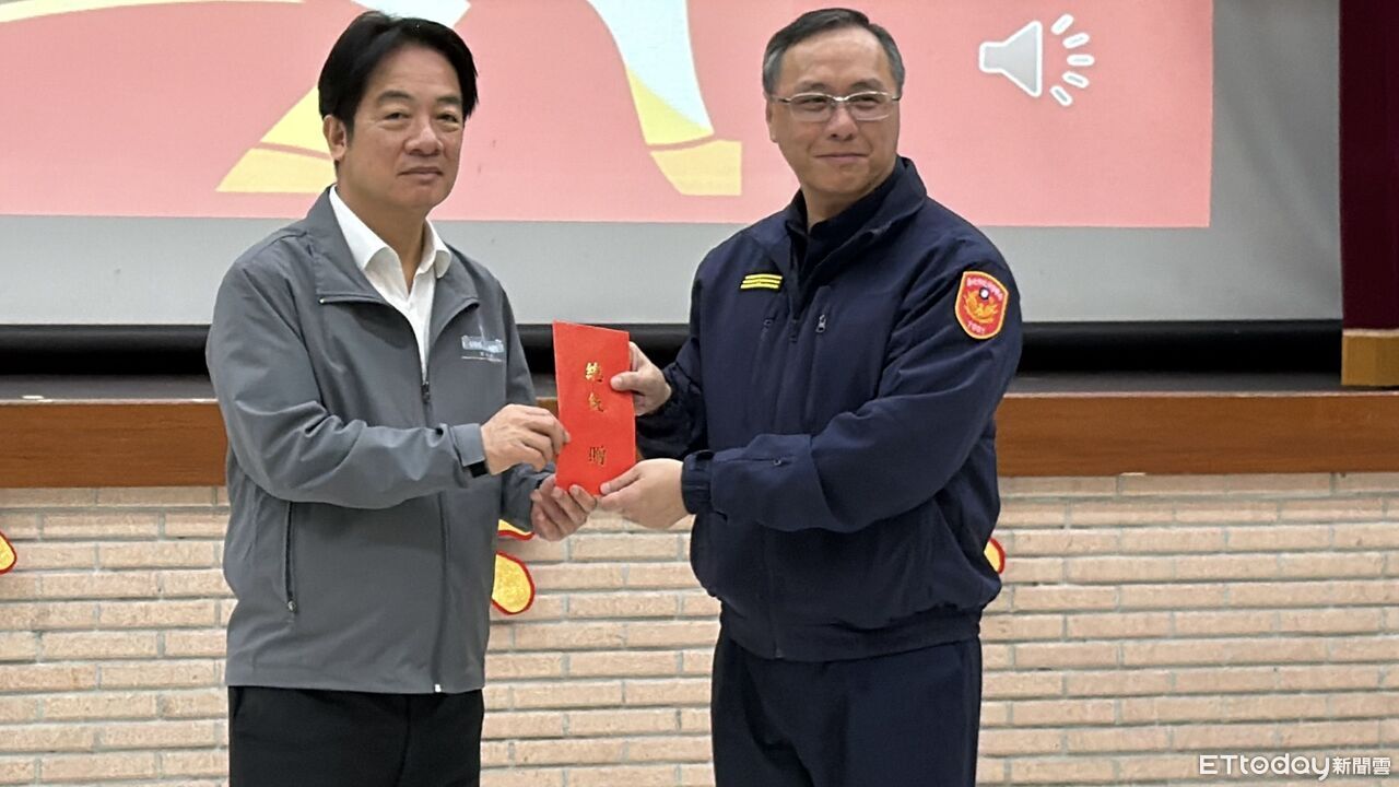 農曆春節假期首日,賴清德總統今日上午前往台北市警察局中正一分局慰勉春節連假期間堅守崗位的警察同仁,肯定並感謝警察人員打擊犯罪、維護治安,也請大家加強勤前講習及平時訓練,注意勤務安全。總統賴清德今(14)日上午11時10分偕同內政部長劉世芳、警政署長張榮興、北市政府警察局長林炎田等人親至北市政府警察局中正第一分局頒贈春節加菜金,慰勞員警過去一整年的勤務辛勞,中正第一分局員警也藉此機會與總統合影,致贈客製化總統府樂高,並祝福總統新的一年「馬到成功」。