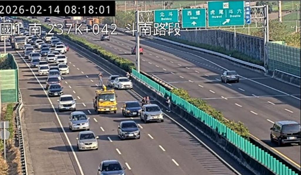 春節連假第一天,交通部高速公路局預估國道下午車流多,6處路段容易塞車,並建議用路人「南北長途走國3、短途不要上國道、替代道路不用等、請搭乘公共運輸」。高公局預判今天下午重點壅塞路段為國1南向楊梅-新竹、彰化系統-埔鹽系統;國3南向土城-關西;國5南向南港系統-頭城;國6西向東草屯-霧峰系統;國10西向仁武至左營端等路段。