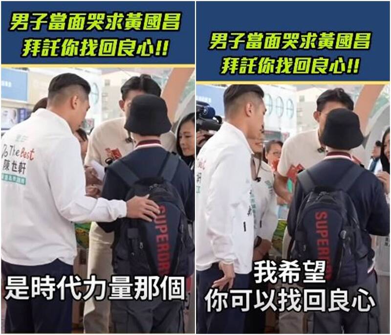 民眾黨主席黃國昌備戰新北市長選戰,常常有民眾在他掃街拜票的過程中當面嗆聲。黃國昌在板橋花市拜票與民眾合照時,有民眾對著黃國昌說「好幾年前認識一個我很喜歡的老師,我找不到他,可不可以幫我找到,是時代力量那個。」、「我希望你可以找回良心。」黃國昌則尷尬回應,歡迎隨時來他的競選總部找他。臉書粉專「Mr.柯學先生」擷取黃國昌YouTube直播頻道的段落,影片中有1名戴著帽子的民眾在與黃國昌合照前對著黃國昌說「好幾年前認識一個我很喜歡的老師,我找不到他,可不可以幫我找到,是時代力量那個。」黃國昌回應「歡迎你,歡迎你,隨時到競選總部來找我,真的謝謝你。」該男子回應「我希望你可以找回良心。」