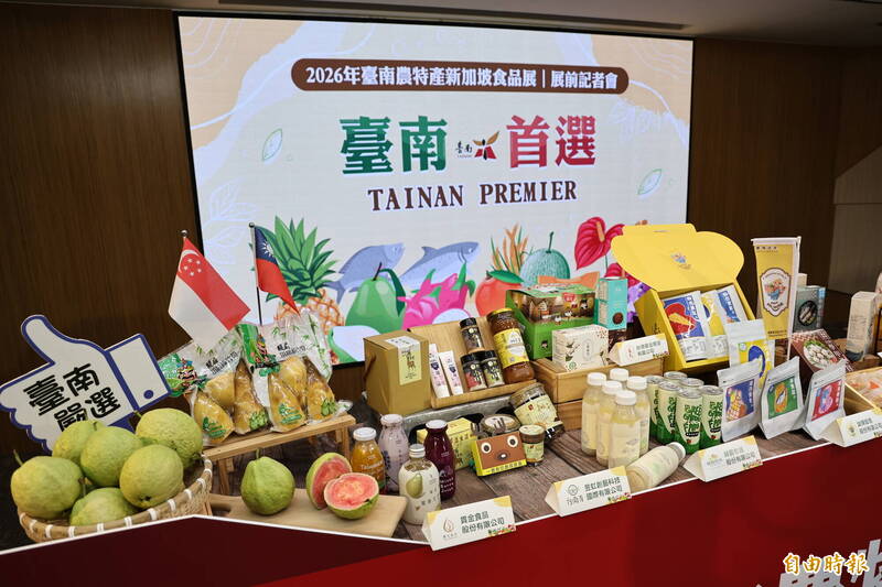 2026新加坡國際食品展將在4月21至24日在新加坡博覽中心盛大登場,台南市政府今年再次集結在地優質農業廠商組成「台南隊」前進新加坡。副市長葉澤山表示,當季鮮甜鳳梨已準備就緒正式啟航,盼再創佳績。市府農業局今天舉辦行前宣傳,現場展示鳳梨、芭樂鮮果及地瓜、虱目魚等多樣台南農特產品禮盒。
