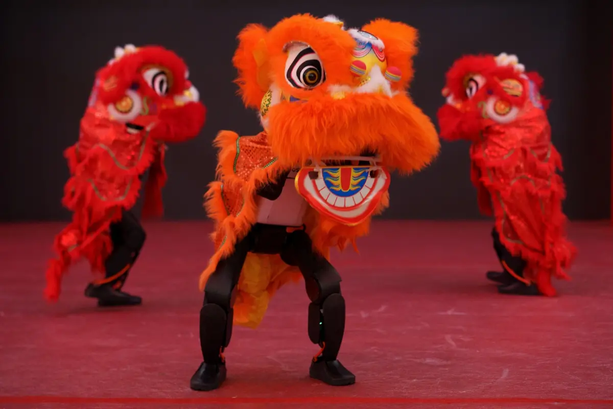 下週就是農曆新年,在中國,連機器人也在緊鑼密鼓準備迎新春。13日在北京一家商場,4台機器人穿上鮮豔的舞獅服裝,進行節目彩排,吸引不少好奇的路人駐足。