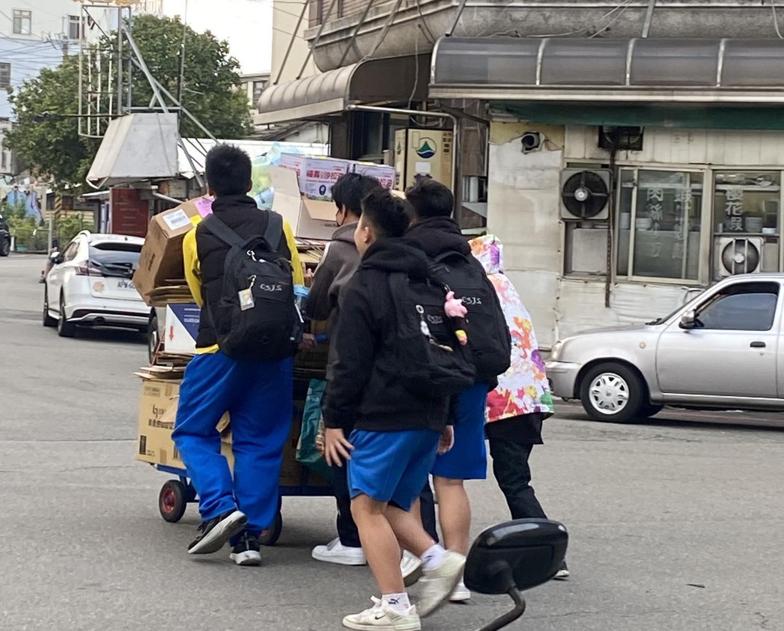 台中市清水街頭,一名阿嬤在風中推著回收車差點翻倒,4名清水國中生放學路過,立即衝上前幫忙。知名作家吳曉樂目睹這幕暖心畫面,忍不住拍下照片,昨(6日)在網路上分享,引發熱議。網友看了十分感動,紛紛留言稱讚,「最美的風景」、「孩子們你們好棒!」;校方也留言表示,為這幾位同學感到驕傲,也讓大家看見孩子們純真的善意。