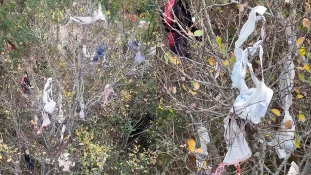 在樹枝上晾掛胸罩,意義何在?有住在香港元朗村屋的街坊在網上分享,指不時發現大欖隧道轉車站沿八鄉路步行,有棵樹的樹枝疑被人勾掛大量胸罩,而胸罩數量近日更有增加的趨勢,故拍下影片好奇詢問因由。有網友調侃晾掛者如當大埔林村許願樹,「祈求風調『乳』順?」。