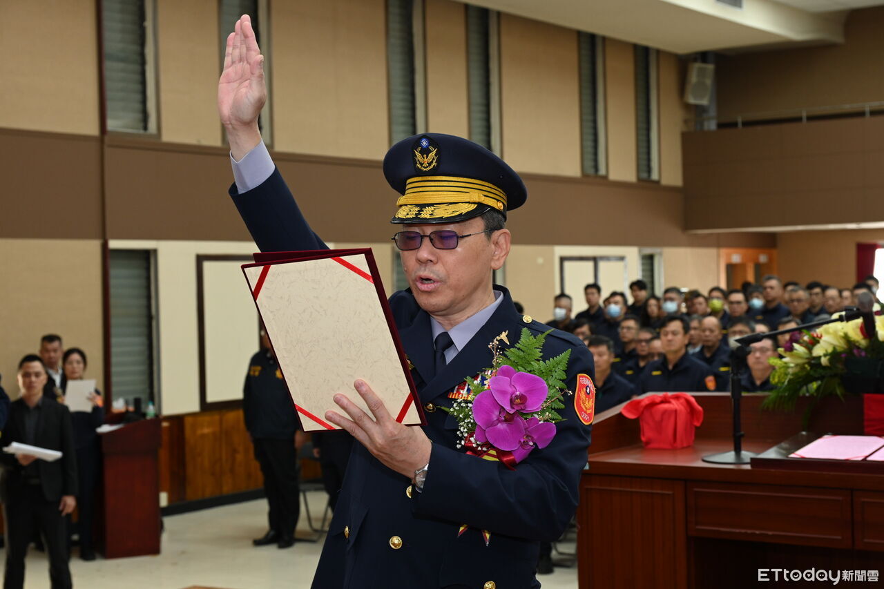 高雄市警察局今天舉行新、卸任局長及14名分局長及大隊長交接,高雄市警察局長由航空警察局長趙瑞華接任,市長陳其邁主持布達典...