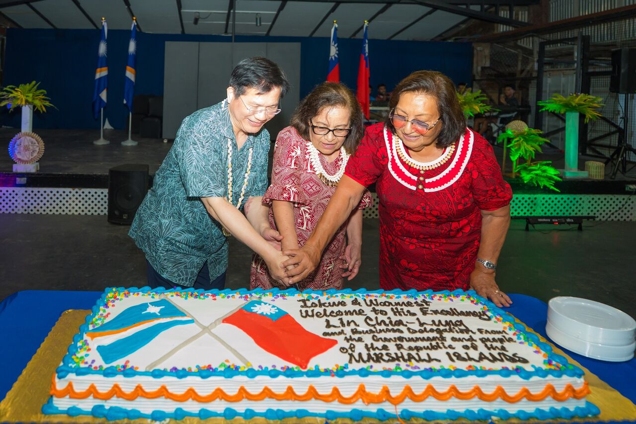 外交部長林佳龍正率團訪問馬紹爾群島共和國,行程十分緊湊。昨(7日)下機後,前往馬紹爾國父卡布亞(Amata Kabua)故居謁陵,隨即赴總統辦公室向總統海妮(Hilda C. Heine)遞交特使國書,訪團並出席海妮主持的歡迎晚宴,雙方一同切下蛋糕,祝福兩國友誼長存、歷久彌堅。