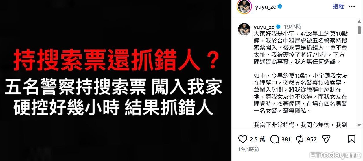 27日晚間8時許,宜蘭縣羅東鎮主幼商場,驚傳有男子持刀,警方獲報後不敢大意,隨即出動大批警力到場搜索,有民眾見到警方全副武裝、手持盾牌逐層搜索,將畫面PO到Threads上引發討論。當天晚間雖未搜索到該男子,但警方調閱監視器後,證實有男子疑似持刀在1樓處徘徊,目前已鎖定其行蹤,全案將依《社維法》偵辦。