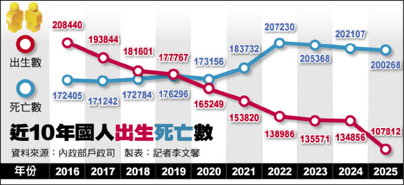 內政部9日公布最新人口統計,2025年全台人口數為2329萬9132人,其中新生兒僅10萬7812人,年粗出生率為千分之4.62,改寫歷史新低,甚至超越南韓、日本,成為全球主要國家中「最不想生」第一名。