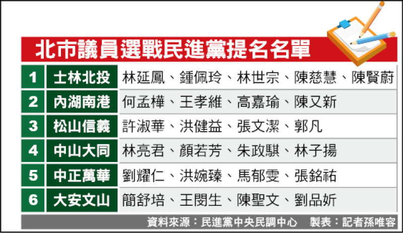 初選結束 多人喊傳統聯合競選 主委張茂楠︰交接時建議朝此推動年底台北市議員選舉,民進黨昨完成壓軸的第三選區(松山、信義)民調初選,六個選區戰將就定位,多人喊出傳統聯合競選、配票策略,力拚提名的廿五席全上。台北市黨部主委張茂楠表示,提名策略務實考量實力,精準提名,只要現任議員同意聯合競選、聯合配票,新人大都會樂見。他任期將屆滿,六月交接時會建議下屆主委朝此方向推動,並跟市長提名人一起討論作法。