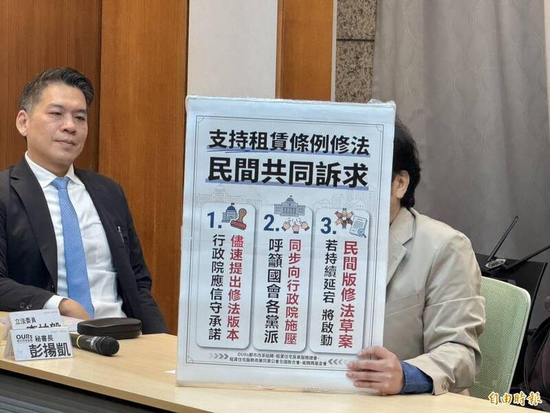 行政院曾提出《租賃住宅市場發展及管理條例》修法方向,主打租期穩定、租霸下車、租金規範及權益保障等四大重點,但至今逾半年內政部仍未提出草案送立法院審議,引發關注。藍綠白立委今(17)日與多個民間團體召開記者會,呼籲行政院儘速提出完整修法版本。民團從房東、房客及市場透明度提出建議,包括建立租霸下車機制、推動「2+2」租期保障及強化租屋登錄與稅制誘因,盼兼顧雙方權益、健全租屋市場。藍委牛煦庭、綠委李柏毅、白委邱慧洳今天與OURs都市改革組織、租賃住宅房東服務總會、租賃住宅服務商業同業公會全國聯合會、崔媽媽基金會等民間團體,共同召開記者會,呼籲行政院應儘快提出的修正草案,並提出「行政院應信守承諾、立法院應向政院施壓、民間版草案啟動」三大訴求。