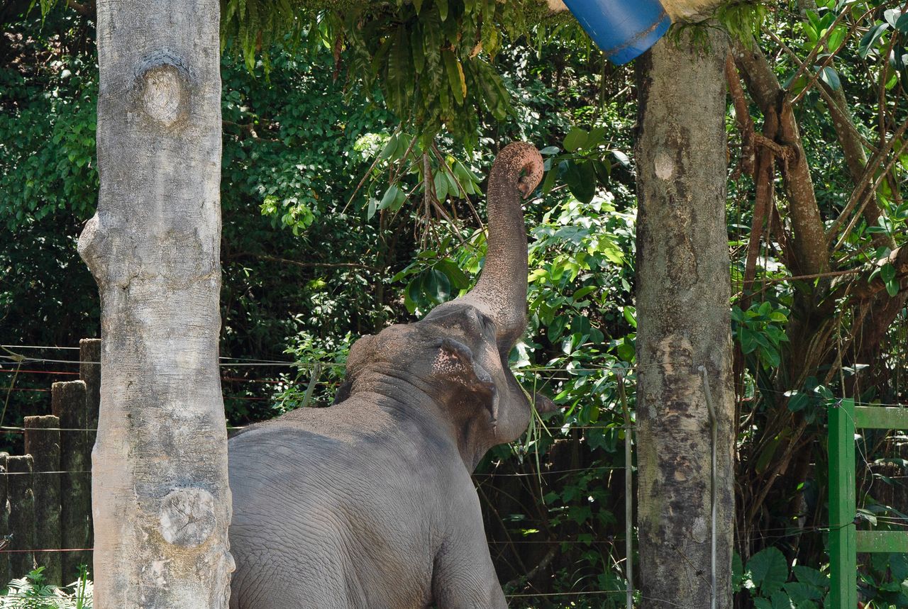 【記者張綵茜/台北報導】台北市立動物園熱帶雨林區的亞洲象活動場裡,有座高挑涼亭懸掛著神祕藍色桶狀物,吸引不少遊客好奇。園方今(2日)透露,這其實是亞洲象的「健身器材」,也是保育員設計的行為豐富化設施之一;另為了更新場地設施,亞洲象「友信」、「友愷」將暫時搬遷至非洲動物區。