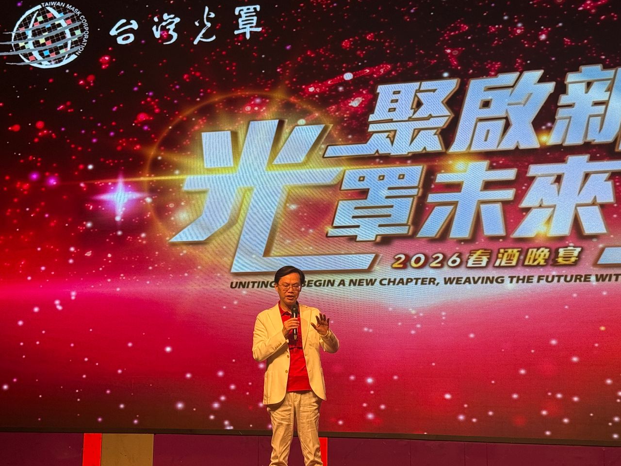 【記者呂承哲/新竹報導】台灣光罩今(23日)舉辦2026年春酒晚會,光聚晶電暨台灣光罩董事長凃俊光於致詞時表示,回顧上任九個月以來的組織轉變,團隊已從過去以問題為導向,逐步轉為以解決方案與成果為目標,未來將持續深化正向文化,帶動集團整體成長。