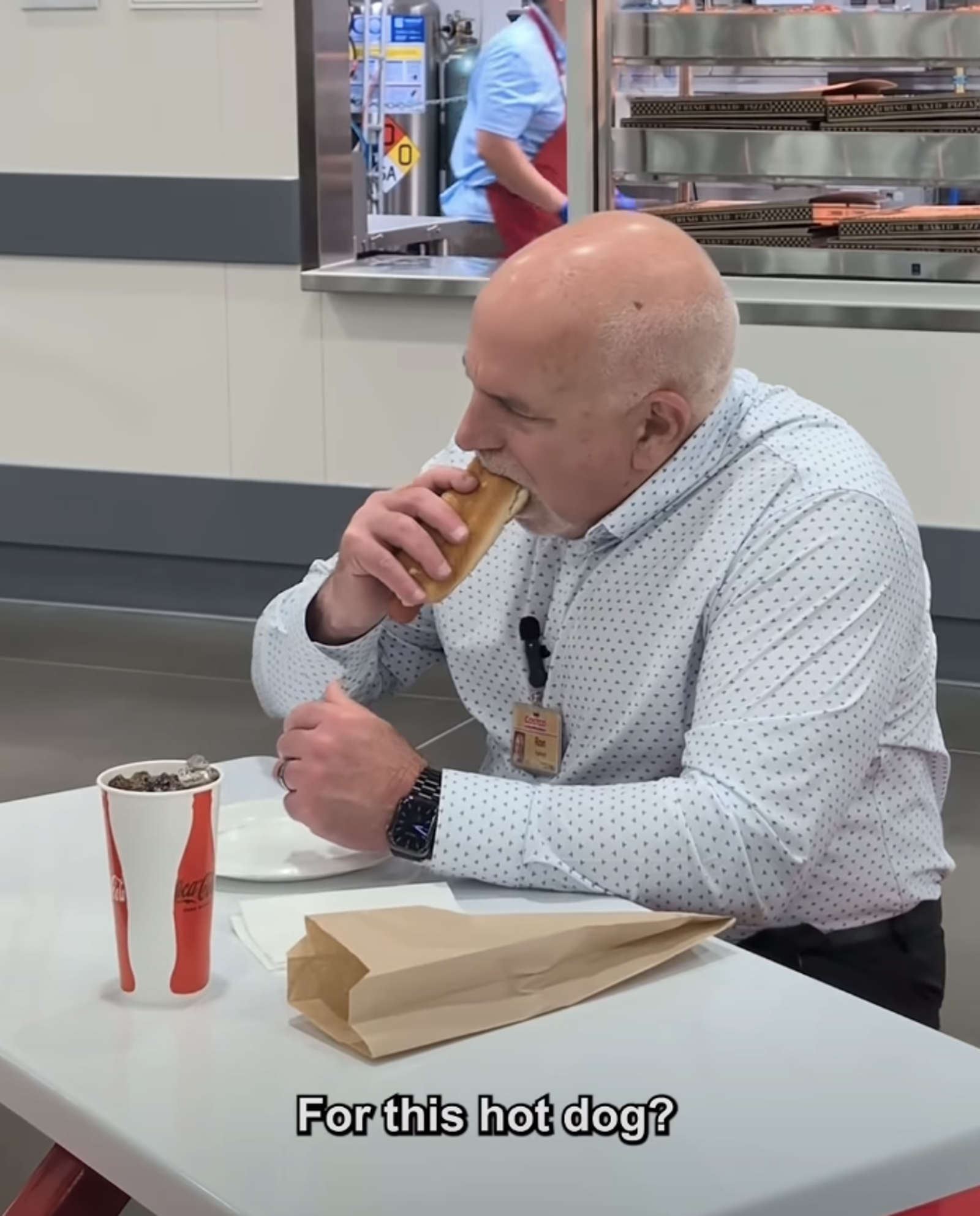 在全球通膨肆虐、餐飲業紛紛喊漲的時代,連鎖美式賣場好市多(Costco)熱狗加飲料組合僅要價1.5美元(約新台幣50元),是許多人心中美味又超值的組合。好市多新任執行長瓦克里斯(Ron Vachris)日前在社群媒體影片中,親自下場品嚐這款經典美食,並對著鏡頭許下承諾:「只要我在的一天,熱狗的價格就不會改變!」