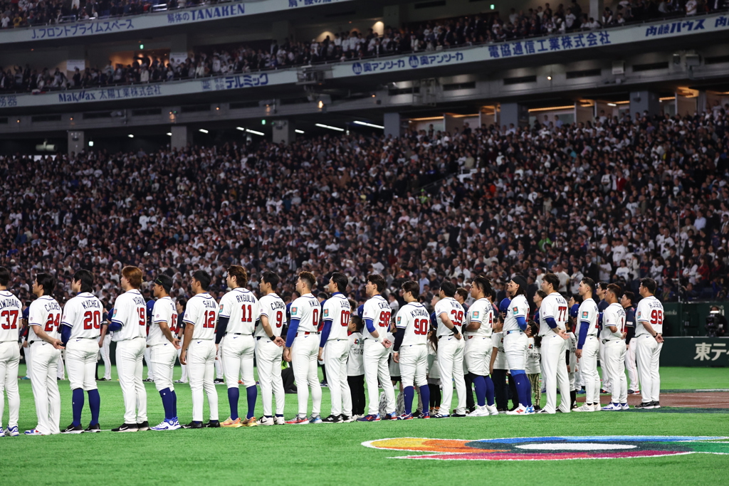 世界棒球經典賽台日大戰在東京巨蛋開打,演員澤村一樹、喜劇演員有吉弘行及乃木坂46成員黑見明香等日本大咖齊聚觀戰!搖滾天團B’z主唱稻葉浩志更翻唱經典動畫主題曲《Touch》熱血應援,台灣藝人林吟蔚也自創歌曲跨海聲援中華隊。