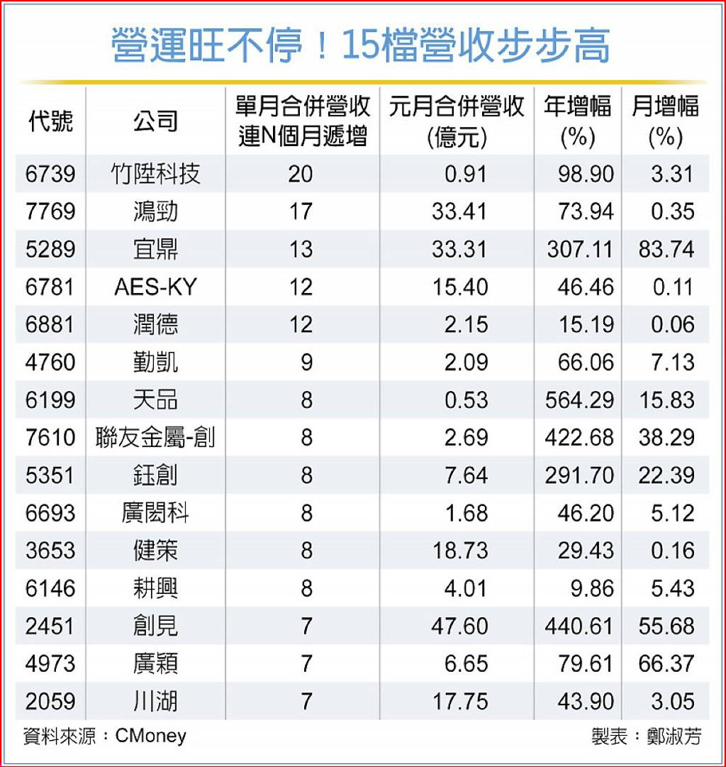網通族群1月營收不淡,倚強科(3219)兆赫、台揚,各擁題材,1月營收均較去年12月成長逾一成,倚強科搭上智慧眼鏡及AI...