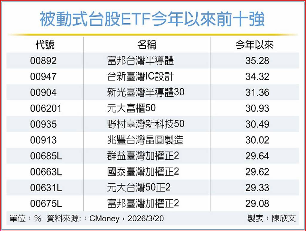 續近年多頭格局,資金動能與產業基本面雙重支撐,市場表現亮眼,權值股領軍下,半導體與AI供應鏈族群成為推升大盤的關鍵核心,帶動整體投資氛圍轉趨樂觀。統計今年以來有六檔台股ETF報酬率突破3成,表現領先市場,且投資主軸高度集中於半導體相關產業,績效表現亮眼的ETF,其投資主軸鎖定在半導體供應鏈、IC設計...
