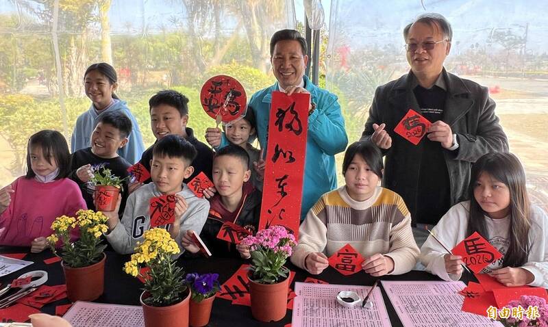 金門「迎新春假日花市」今天在林務所登場,縣長陳福海專程到場,在2座1000公升容量的大酒甕揮毫寫下「龍馬精神,福至金門」,在彩繪、墨香中為「酒香藝文大道」揭開序幕。金門縣林務所說,為滿足鄉親新春節慶布置所需,假日花市提供一站式購足應景花卉的攤位,再度攜手金門縣書法學會理事長徐心富率領的書法名家群,以「馬到成功、浯島迎春」為主題,結合各名家渾厚的筆韻,以酒甕瓶身為畫布,以彩繪、書寫「馬」字的千姿百態。